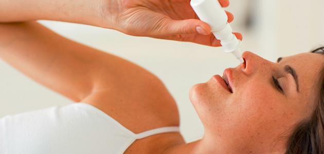 - إمالة الرأس للأمام، والتنفس ببطء من خلال الأنف، ورش المحلول مرة واحدة أو مرتين في كل منخر.