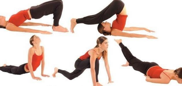 - تمرين الاستلقاء على الظّهر: وهذا التّمرين لَهُ عدّة طُرُق جميعُها تُؤدّي إلى شدّ الجسم، ومن هذه الطُّرق الاستلقاء على الظّهر، ومن ثُمَّ رفع الجسم كاملاً كالجسر بتركيز اليدين والقدمين على الأرض، أو رفع القدمين وتحركيهما بحركاتٍ تُشبه قيادة الدّراجة الهوائيّة، أو الاستلقاء على الظَّهر، مع رفع منطقة الخصر للأعلى وإنزالها للأسفل عدّة مرّات مُتتالية.