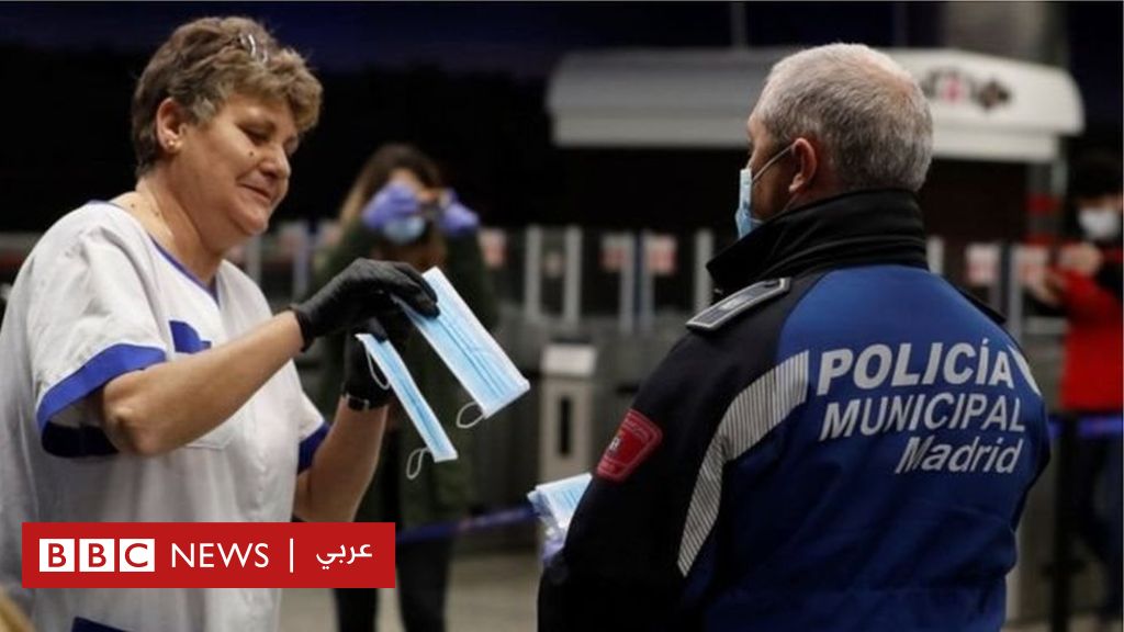 رجال الشرطة يوزعون كمامات في محطات المترو والسكك الحديدية في إسبانيا