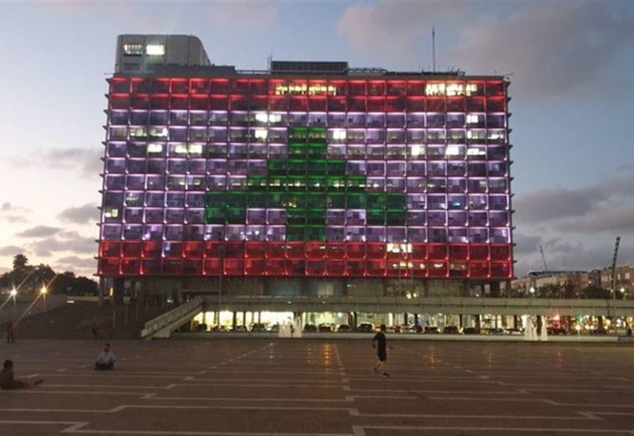 وأضاءت بلدية تل أبيب مقرها بألوان العلم اللبناني تضامنا مع بيروت.