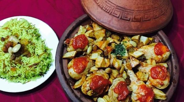 - يغطى الطاجين بغطائه أو بورق ألمنيوم و يدخل الفرن على حرارة 180° لمدة 45 دقيقة.