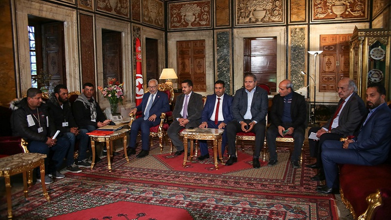 استقبل رئيس مجلس نواب الشعب راشد الغنوشي ، ظهر اليوم الاربعاء 18 ديسمبر 2019 بقصر باردو، ممثلين عن أصحاب الشهائد العليا من ولاية القصرين المعتصمين بساحة باردو، وذلك بحضور عدد من النواب عن دائرة القصرين.