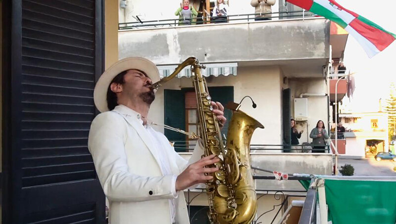 ويقول الفنان دانييلي فيتالي -عازف الساكسفون الشهير في إيطاليا- في تصريح من نابولي إن “الموسيقى هي السلاح الوحيد الذي أملكه للمقاومة وتحسين الأوضاع التي نعيشها، بسبب البقاء مجبرين في المنزل”.