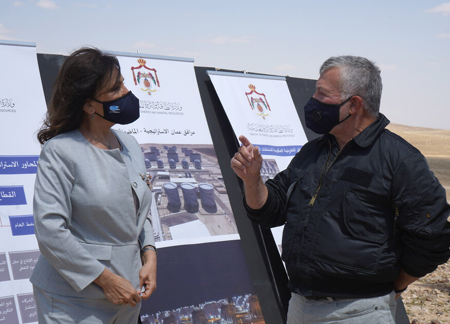 واستمع جلالة الملك إلى إيجاز قدمته وزيرة الطاقة والثروة المعدنية المهندسة هالة زواتي، أشارت فيه إلى أن مرافق عمان الإستراتيجية للمشتقات النفطية يوجد فيها مخزون إستراتيجي آمن للمملكة من البنزين والسولار والغاز البترولي المسال ووقود الطائرات.