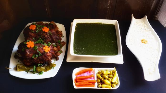 ثم تزين بالفستق واللوز المقليين ويقدم بجانبها الأرز الأبيض.