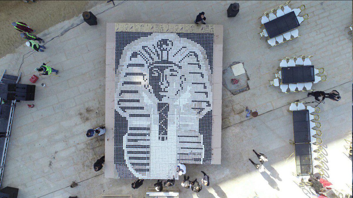 وشهد ممثلون عن موسوعة غينيس للأرقام القياسية، عملية تركيب قناع الفرعون الشاب، التي نفذها مجموعة من الشباب المصريين على مساحة 60 مترا في ساحة المتحف الكبير قبل تسجيل اللوحة رسميًا في الموسوعة.