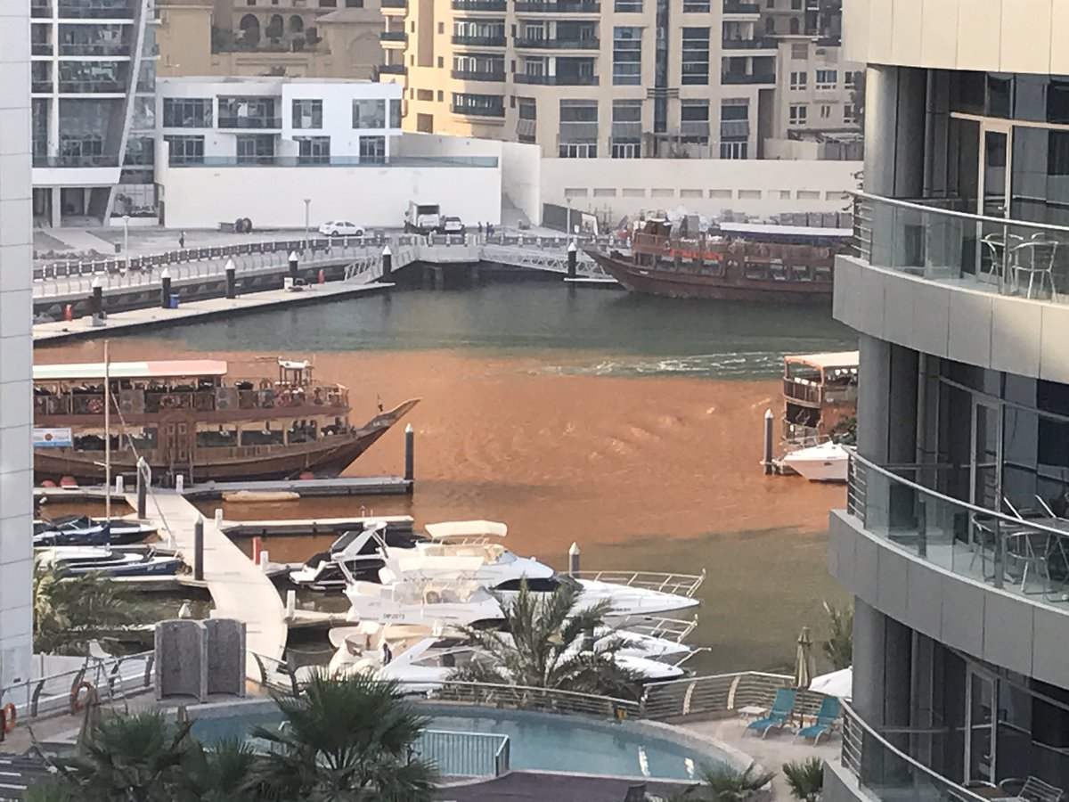 بالصور بلدية دبي توضح سبب تغير لون المياه بقناة “المارينا”