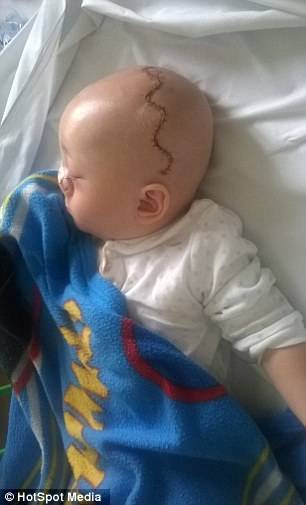 وخضع الطفل مؤخرا لعدة عمليات جراحية لمساعدته على التنفس وسد الفجوة التي لديه في الجمجمة.
