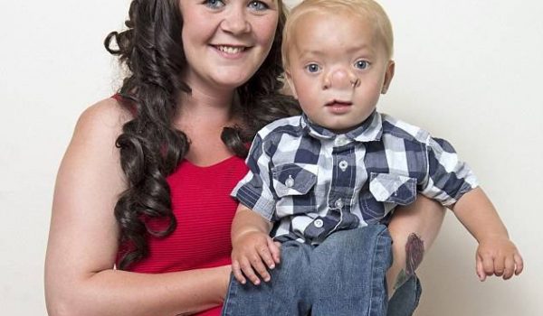 وعندما وضعته في مستشفى جامعة ويلز عام 2014 انعقد لسانها ولم تنطق بكلمة لما رأت على وجهه رضيعها انتفاخ فوق الأنف أشبه بكرة جولف كبيرة.