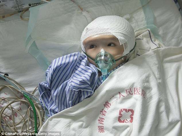 ولدت الطفلة الصينية “هان هان” البالغة من العمر 3 سنوات بحالة نادرة ، حيث كانت جمجمتها أربعة أضعاف الحجم الطبيعي ، و ذكر الأطباء أن هذا يمكن أن يمثل خطرا على حياتها و هو ما ألزمهم بطبع جمجمة على طابعة بتقنية ال 3D من مادة التيتانيوم لزرعها بدلا من الجمجمة المتضخمة.