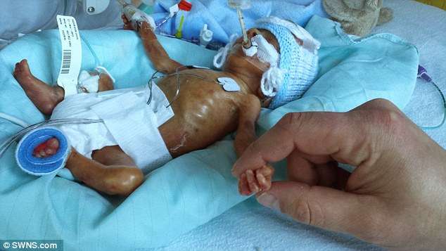 و تحكي الأم أنها تعرضت لآلام شديدة بالظهر في الأسبوع ال 24 من الحمل ، و عند بلوغها إلى المستشفى، وجدوا أنها تمر بمراحل الولادة و على الجنين أن يخرج ، مما فاجأ الجميع ، و لكن حاولت الأم الإبقاء عليه داخل الرحم حتى 16 ساعة في مقاومة لآلام الولادة كي تعطيه أكبر فرصة للنجاة ، و عند ولادته كان جنينا غير مكتمل النمو ، و قد بدا جلده شفافا جدا و مغطى بالشعر الأبيض ، وذكرت الأم أنها تشعر بسعادة غارمة لوجود “ليني” الآن بين أحضانها , فهي ترى أن ما حدث له معجزة قد وهبت له الحياة .