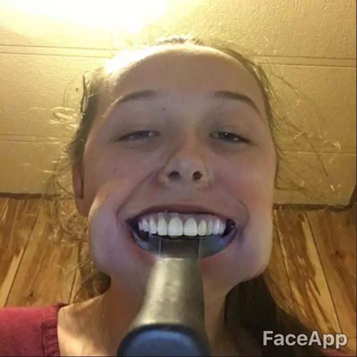 وبعد أن تحدتها صديقتها للقيام بذلك، علقت الأداة خلف شفتيها، ونشرت صورة ساخرة على الإنترنت مرفقة بتعليق: “كيف تخبر والدتك بأنك لديك مطرقة عالقة في فمك”.