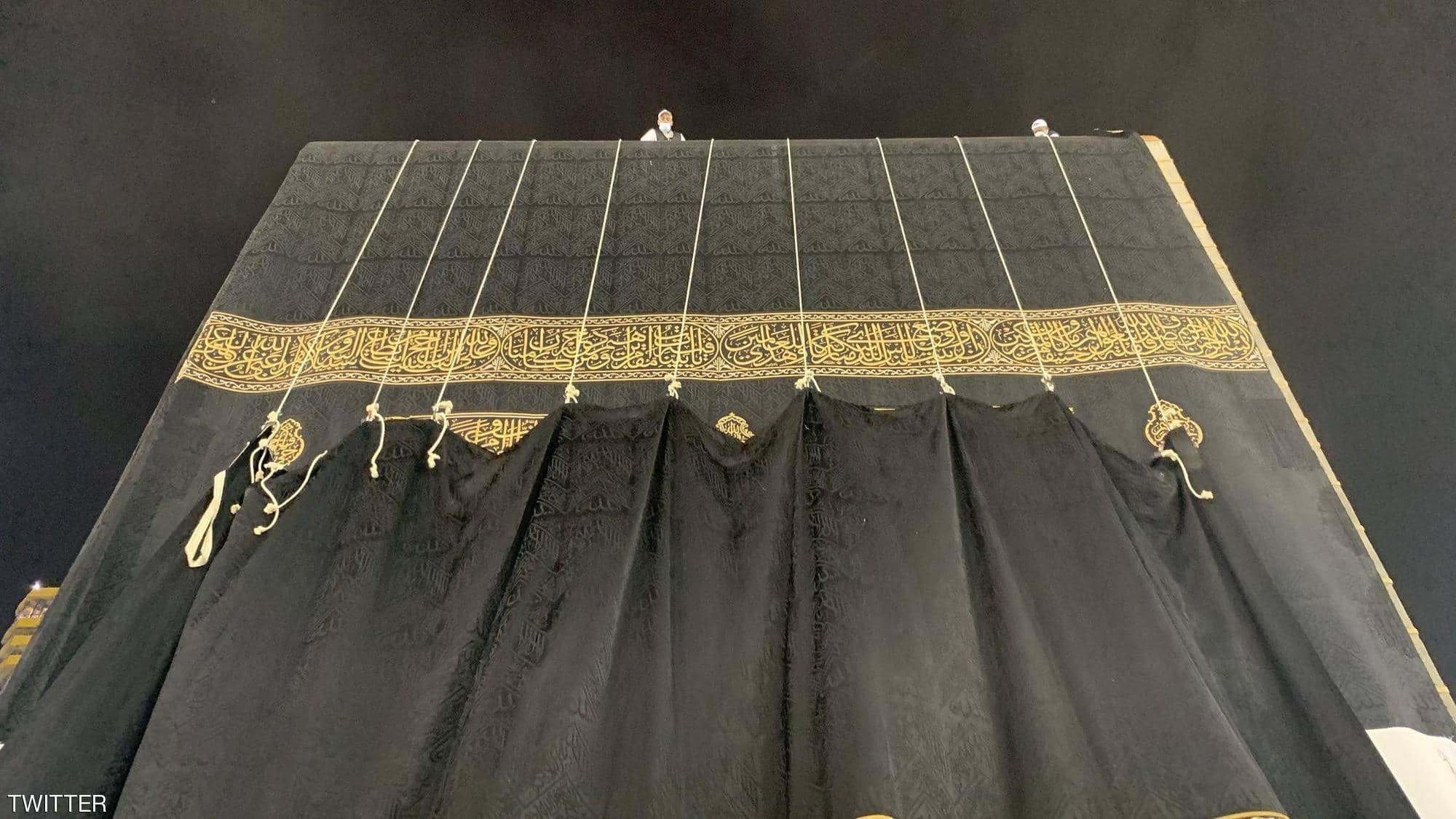 ونشر الحساب الرسمي لإمارة منطقة مكة المكرمة على “تويتر” صورا ترصد تغيير كسوة الكعبة المشرفة من كافة الجوانب، كما نشر رواد مواقع التواصل الاجتماعي فيديو لمراسم تغيير الكسوة مع هطول الأمطار الخفيفة.