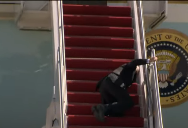 بايدن يتعثر مجددا أثناء صعوده إلى الطائرة