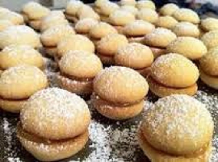 - نخرج الصينية من الفرن، ونبدأ بحشو الحلى بالمربى، ثم نترك بسكويت اللانشكير جانباً حتى يبرد.