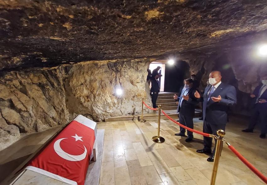 أوغلو تحيات الرئيس التركي رجب طيب أردوغان، وكتب على سجل كبار الزوار للصرح.