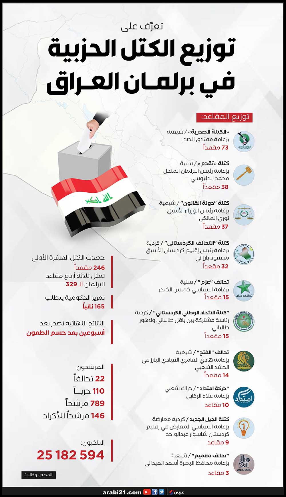 الإنفوغراف أدناه يظهر توزيع الكتل الحزبية في البرلمان العراقي..