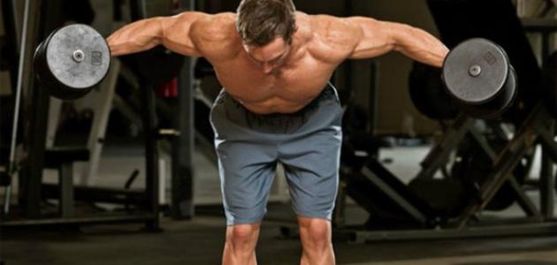 - تمارين الدمبل: الدمبل معروف بقدرته على زيادة حجم عضلات الكتف بشكل كبير، فيتم مسك الدمبل بين اليدين ومن ثم رفعه للأعلى وإنزاله للأسفل عدة مرات متتالية، أو بمسك اثنين من الدمبل كل دمبل بيد ومن ثم مد الذراعين على الجوانب كما جناح الطير، ويُكرر هذا التمرين من 10 إلى 20 مرة يومياً.
