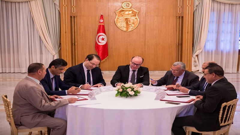 وشهدت عملية التوقيع حضور نورالدين البحيري رئيس كتلة حركة النهضة ومحمد عبو امين عام التيار الديمقراطي وزهير المغزاوي امين عام حركة الشعب ويوسف الشاهد رئيس حركة تحيا تونس وحسونة الناصفي رئيس كتلة الإصلاح الوطني .