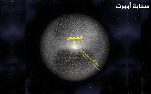 رسم تخيلي لأم المذنبات تحيط بالمجموعة الشمسية على مسافة 100 ألف وحدة فلكية