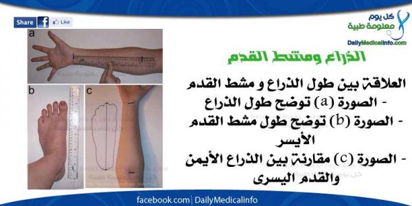 وبمقارنه طول كلا من الزراع والقدم ثبت ان طول الزراع مساوي لطول القدم