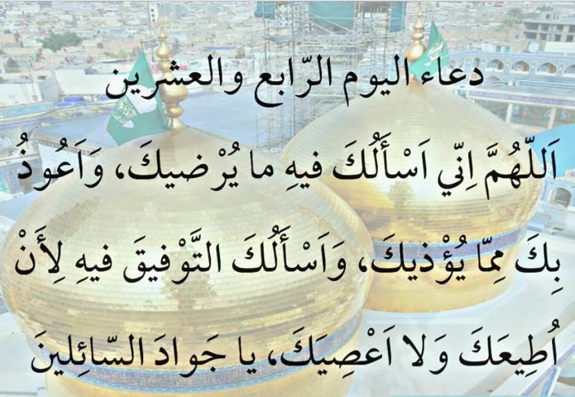 ” اللَّهُمَّ لَا تُؤَاخِذْنِي فِيهِ بِالْعَثَرَاتِ، وَ أَقِلْنِي فِيهِ مِنَ الْخَطَايَا وَ الْهَفَوَاتِ، وَ لَا تَجْعَلْنِي غَرَضاً لِلْبَلَايَا وَ الْآفَاتِ، بِعِزِّكَ يَا عِزَّ الْمُسْلِمِينَ”، وفضل هذا الدعاء هو: “مَنْ دَعَا بِهِ فَكَأَنَّمَا صَامَ مَعَ النَّبِيِّينَ وَ الشُّهَدَاءِ وَ الصَّالِحِينَ”