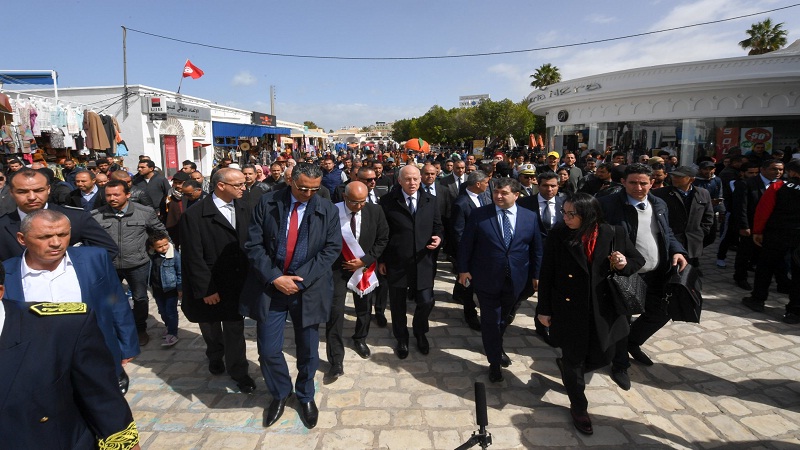 رئيس الجمهورية يؤدي زيارة الى سوق ميدون ومعبد الغريبة بجربة
