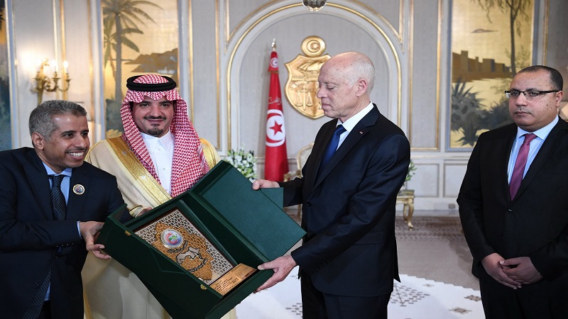 استقبل رئيس الجمهورية قيس سعيّد صباح الأحد 1 مارس 2020 وزير الداخلية السعودي الأمير عبد العزيز بن سعود بن نايف بن عبد العزيز الرئيس الفخري لمجلس وزراء الداخلية العرب.