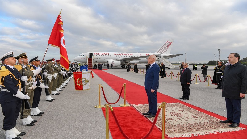غادر رئيس الجمهورية قيس سعيد صباح الأحد 2 فيفري 2020 أرض الوطن في اتجاه الجزائر لتأدية زيارة دولة استجابة لدعوة من الرئيس الجزائري عبد المجيد تبون، وتنفيذا لتعهد قطعه خلال أداء القسم بأن تكون الجزائر أول محطة في زياراته الرسمية إلى الخارج.