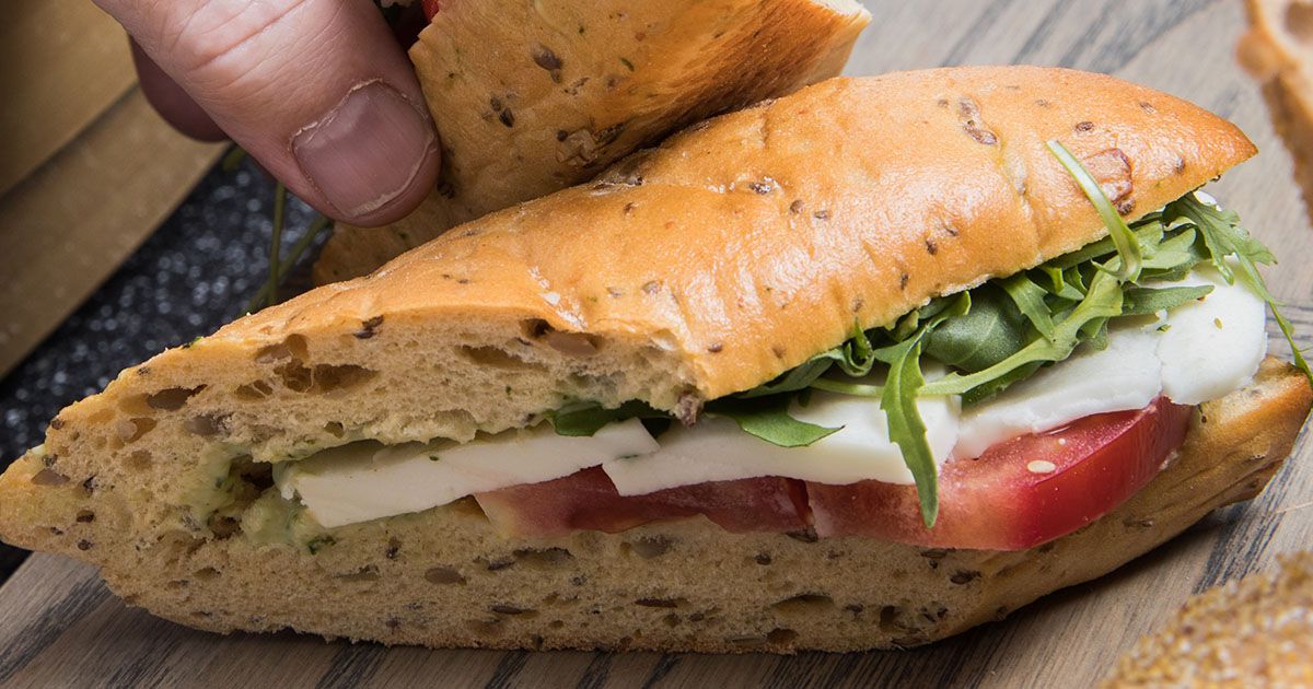1- بواسطة سكين، إقطعي الخبز بشكل طولي لفتحه.