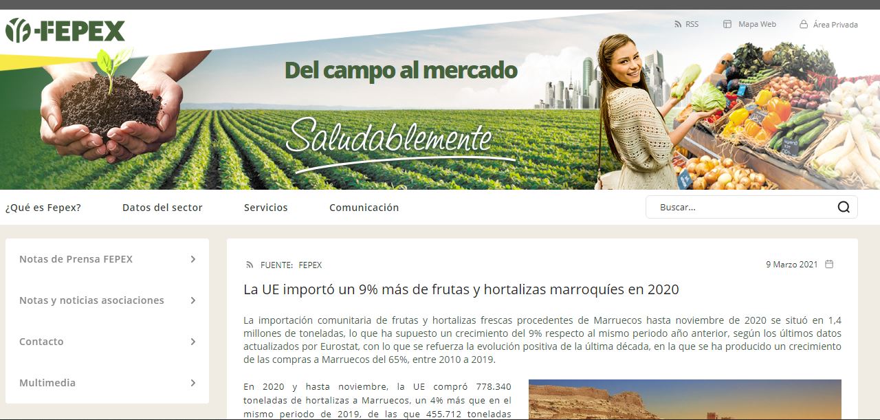 وكشفت الفيدرالية الإسبانية، في بيان نشرته على موقعها الإلكتروني الرسمي، أن الصادرات المغربية من الخضر والفواكه نحو الاتحاد الأوروبي حققت ارتفاعا ما بين سنتي 2010 و2019 بلغت نسبته 65 بالمئة، حيث انتقل حجمها من 856 ألفا و919 طنا إلى 1.4 مليون طن.