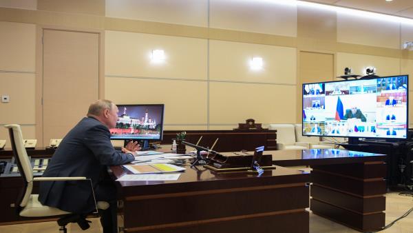 وكان بوتين قد عقد، أمس الأربعاء، لأول مرة اجتماعا مع أعضاء حكومته بنظام مؤتمر الفيديو، داعيا الوزراء إلى الاعتناء بصحتهم، ومؤكدا أن نظام العمل عن بعد لن يؤثر على جودته.
