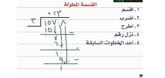 تعد القسمة المطولة من أساسيات العمليات الحسابية، وهي طريقة وسبيل يتم من خلالها التوصل للباقي وكيفية تحويل الباقي لأعداد عشرية، عن طريق مجموعة من الإجراءات والخطوات المهمة وهي:[٤][٥]