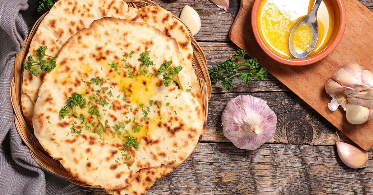 6- سخّني مقلاة على نار متوسطة. اطهي خبز النان لدقيقتين من كلّ جانب حتى ينضج. قدّميه ساخناً.