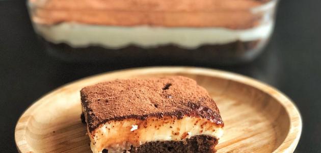 • يصب الخليط السابق فوق قطع كيك الشوكولاتة التي تم رصها في البداية، ويوضع في الثلاجة إلى أن تجمد الطبقات تمامًا.