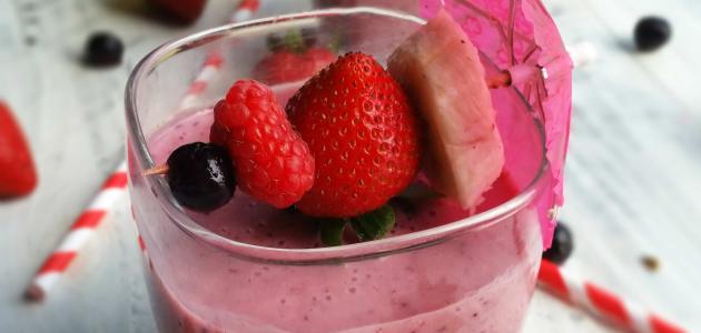 . كوكتيل اللبن بالموز والفراولة . مكونات كوكتيل اللبن بالموز والفراولة . طريقة صنع كوكتيل اللبن بالموز والفراولة . القيمة الغذائية لكوكتيل اللبن بالموز