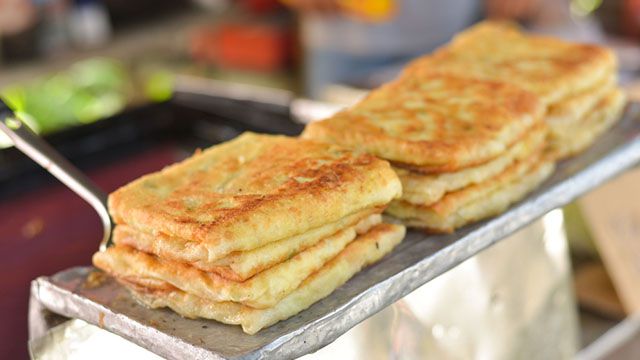 7- أضيفي حشوة اللحم إلى المطبق. أغلقي أطراف العجينة على بعضها ثمّ قطّعي المطبق إلى مكعبات.