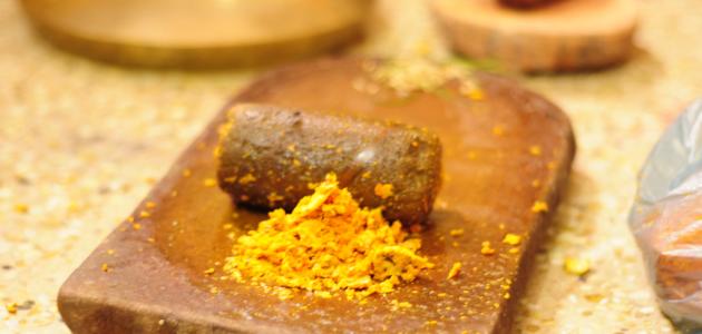 - تُمزج كمية من الكركم، وكمية من مسحوق خشب الصندل.