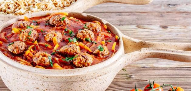 - ثالثًا: يوضع في مقلاة الزيت الخاص بخليط اللحم ويسخن ثم توضع كرات اللحم وتقلب في الزيت حتى تنضج ويجف ماؤها، ثم تُصف في صينية الفرن هي والبطاطا وتوضع جانبًا، ويسخن الفرن على درجة حرارة عالية.