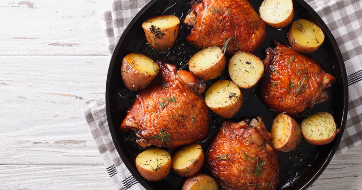 4- ضعي مزيج البطاطس ومزيج الدجاج في صينية فرن وغلّفيها بورق قصدير. أدخليها الى فرن محمّى مسبقاً على حرارة 200 درجة مئوية حتى تنضج المكونات أي حوالي 20 دقيقة.