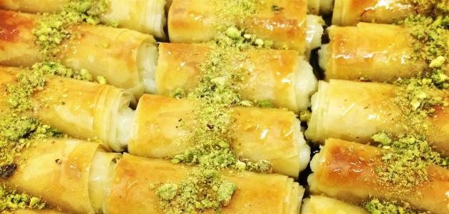 - تُوضع كمية القشطة داخل الرقائق وتُلف شريطة أن تُغلق من جميع الجوانب، وذلك منعًا لخروج القشطة في أثناء وجودها في الفرن، وتتابع العملية حتى إنهاء جميع الكمية.