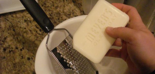 - تبرش قطعة الصابون في وعاء عميق برشاً صغيراً وناعم.