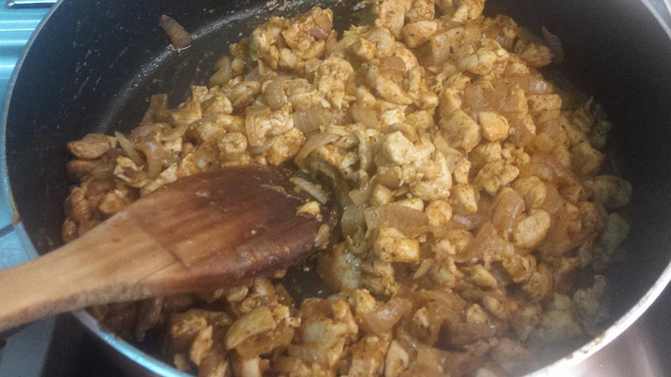 نقطع صدور الدجاج بشكل شرائح رفيعة او مربعات ونقلب الدجاج مع القليل من الزيت ثم نضيف بصل مقطع وفليفلة مقطعة ونتبلها بالملح والفلفل الأسود ونضيف بهارات مكسيكية ان وجدت واذا لم توجد القليل من الكمون البابريكا ورشة خفيفة من الثوم البودرة ونقلب حتى تستوي الحشوة.. ممكن نضيف التالي (وهاي الخطوة اختيارية ) معلقة صغيرة صلصة طماطم مع القليل من الماء اقل من مقدار فنجان قهوة ونتركها تتسبك قليلا بحيث تصبح الحشوة رطبة فقط و