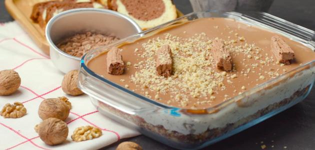 - صبّ الخليط فوق طبقات البسكويت، وتوزيعها بشكل متساوي.