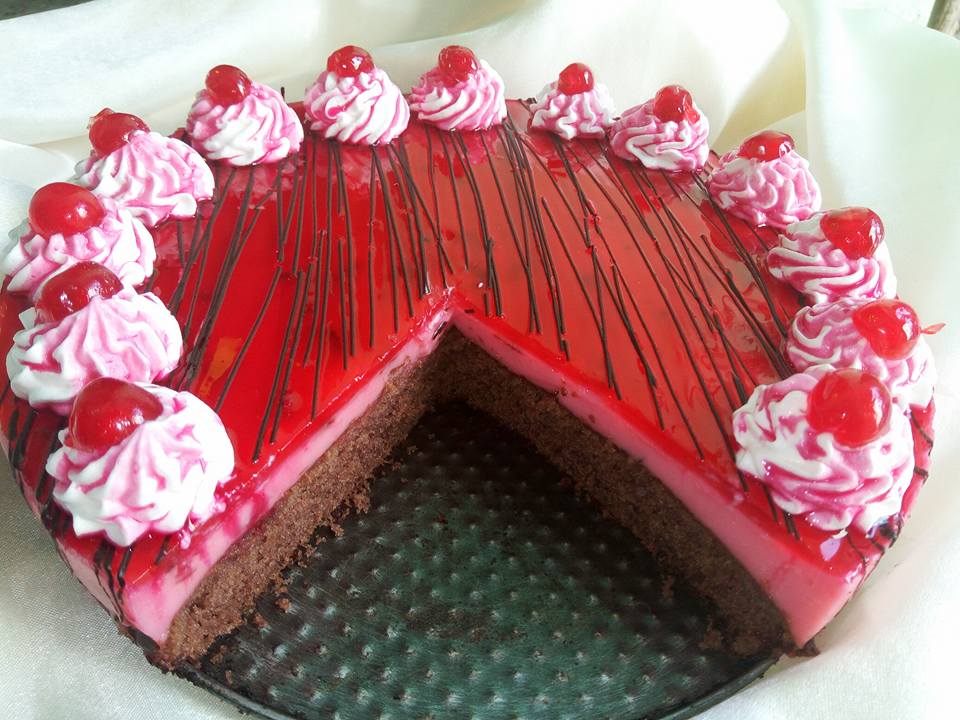 التزيين ..نزين بخطوط من الشوكولا والكريم شونتيي وفوق الكريم شونتيي نصب القليل من شراب الرمان ونزبن بالكرز وبالصحه والعافيه.