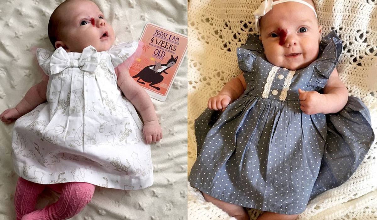 طفلة يبلغ عمرها 11 أسبوع تكتشف والدتها أنها مصابة بـ ورم وعائي في وجهها وهو عبارة عن تجمع مجموعة من الأوعية الدموية مع بعضها في كتلة،
