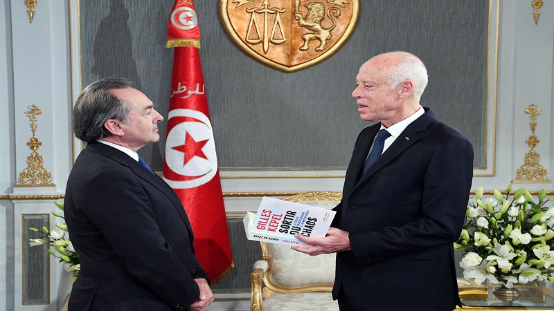 استقبل رئيس الجمهورية قيس سعيّد مساء الأربعاء 12 فيفري 2020 بقصر قرطاج الكاتب والباحث السياسي الفرنسي جيل كيبيل الذي أهدى له بالمناسبة نسخة من كتابه الجديد “الخروج من الفوضى والأزمات في منطقة المتوسط والشرق الأوسط”.
