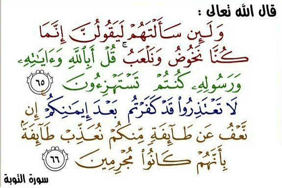 قدمنا لكم قل ابالله واياته ورسوله كنتم تستهزئون لا تعتذروا سبب النزول، و لا يأتي الاستهزاء من قبل المنافقين و لا الكفار الا في سبيل دفع المؤمنين و السلمين عن الدين الاسلامي، و التقليل من عزيمة الأشخاص المحافظين على الدين الاسلامي.
