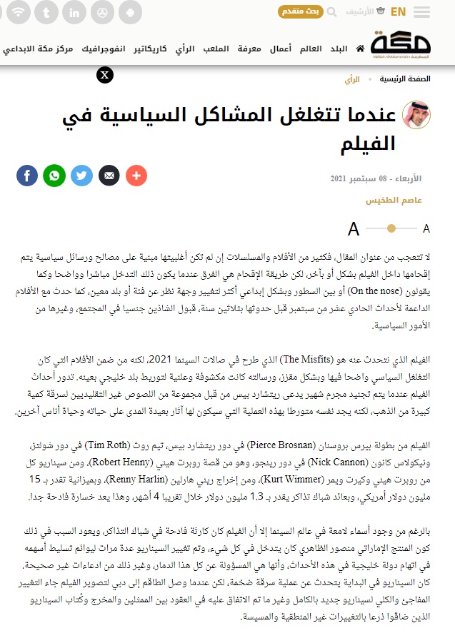 وجه كاتب سعودي، انتقادات حادة، لفيلم “ميسفتس” الذي أنتجه صانع