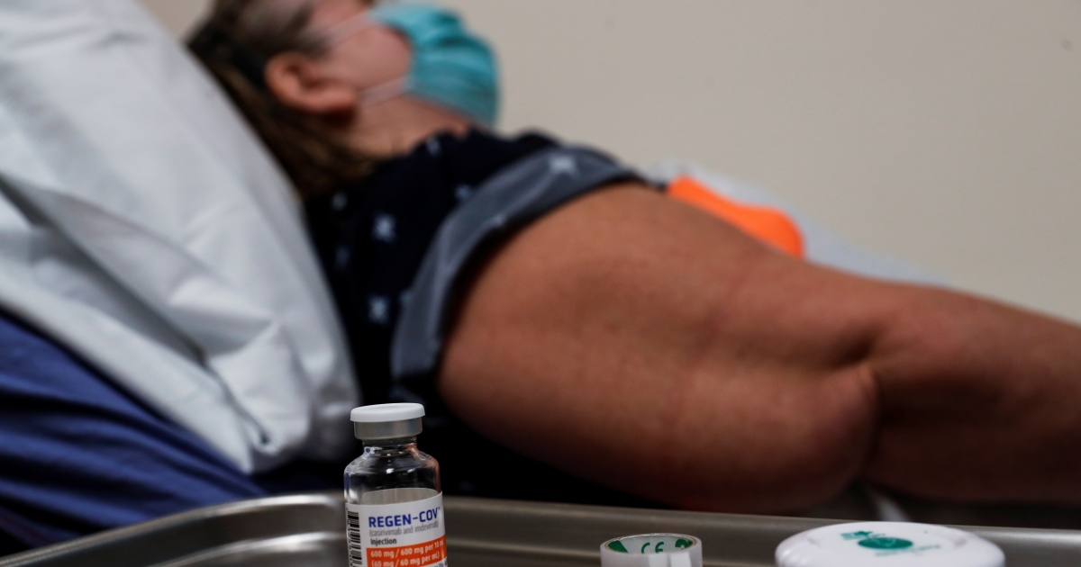 ويُطلق على توليفة الأجسام المضادة اسم “ريجن-كوف” في الولايات المتحدة، بينما يُباع في الدول الأخرى باسم “رونابريف”. ويُستخدم العقاران حاليا في علاج المرضى المعرضين لخطر الإصابة بعدوى شديدة.